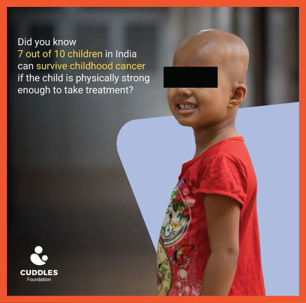 This campaign of mine is being done in partnership with the NGO -Cuddles Foundation and aims to fight hunger and malnutrition in children from low-income homes by giving them a MONTHLY RATION BASKET. This improves their chance of survival by 70% and ultimately does save lives. The baskets are given to children at the Basavatarakam Indo-American Cancer Hospital and MNJ Hospital for Oncology in Hyderabad.