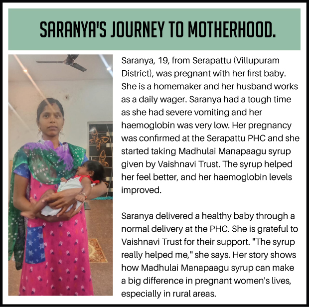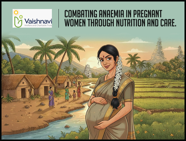 The Shakthi Program, an initiative by Vaishnavi Welfare and Charitable Trust focuses on improving the health of pregnant women in rural Tamil Nadu. The program works to prevent anaemia and malnutrition during pregnancy through proper nutrition support and regular monitoring. The goal is simple: healthy mothers who give birth to healthy babies, breaking the cycle of malnutrition and creating a stronger future for the community.
