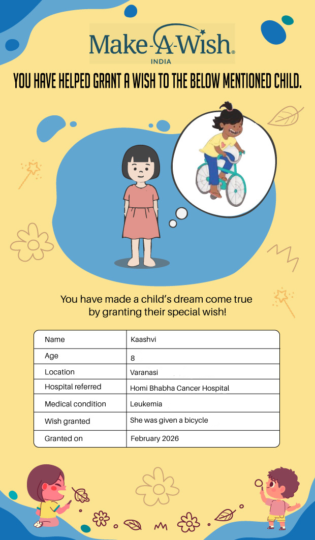 At an average cost of INR 10,000, every wish covers planning, logistics, and the magical experience itself, and by supporting this campaign, you are not just creating smiles but giving children hope, strength, and a better chance of recovery.
