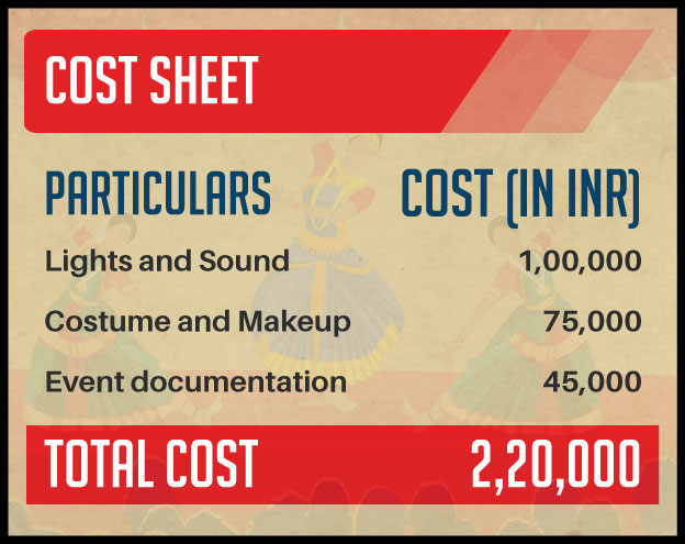 It requires INR 2.2L for the festival to come to life; a detailed cost breakdown is given below.