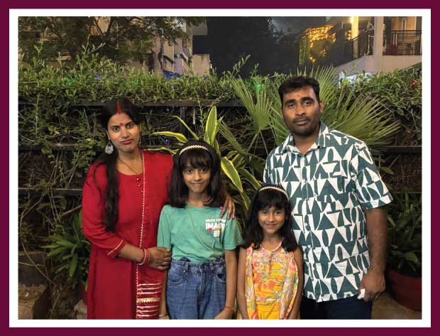 Guru has been a pillar of honesty and trustworthiness for 27 years, earning the deep respect of those he serves through his hard work as a domestic help at our house. He and his wife, Bharti, represent the incredible resilience of India’s hardworking low-income section domestic workforce, laboring for 12-15 hours every single day. They are parents to two lovely girls, Gauri (8 years old) and Monika (6 years old). This family’s bond is built on a foundation of integrity and honesty, making them truly deserving of a helping hand from the community.