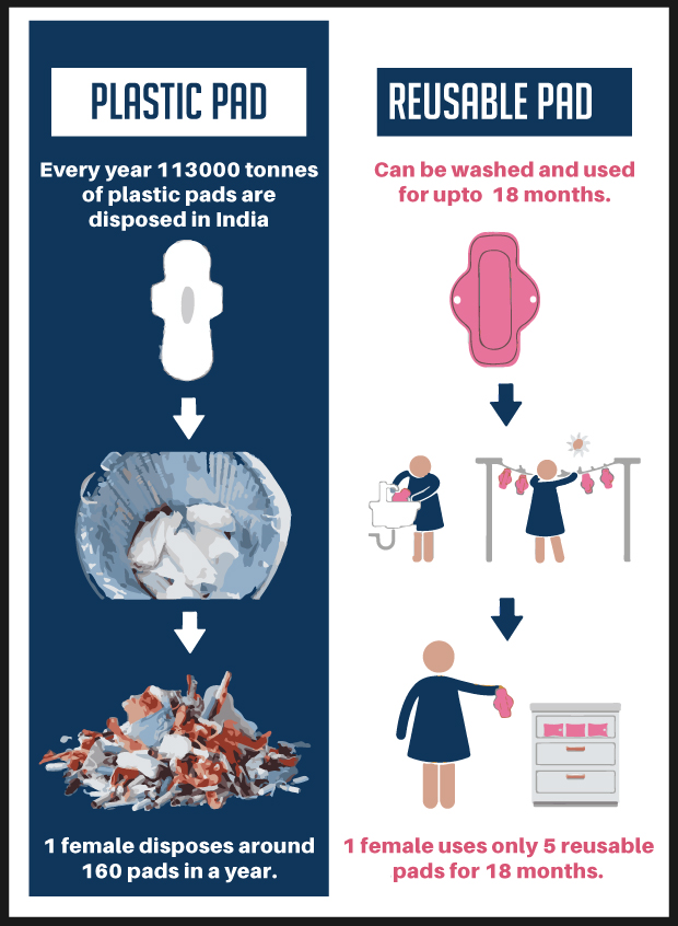 The Hygiene kit that is being is unique as it is reusable. It has 5 pads - 3 for medium flow and 2 for heavy flow. It lasts for 18 months and dramatically reduces the amount of waste created (as otherwise pads are dumped every month). As they last for so long, they are also cost-effective. Disposable/Normal sanitary pads have to be bought repeatedly, cost INR 50-100 per month, and are very damaging to the environment as they create huge waste.